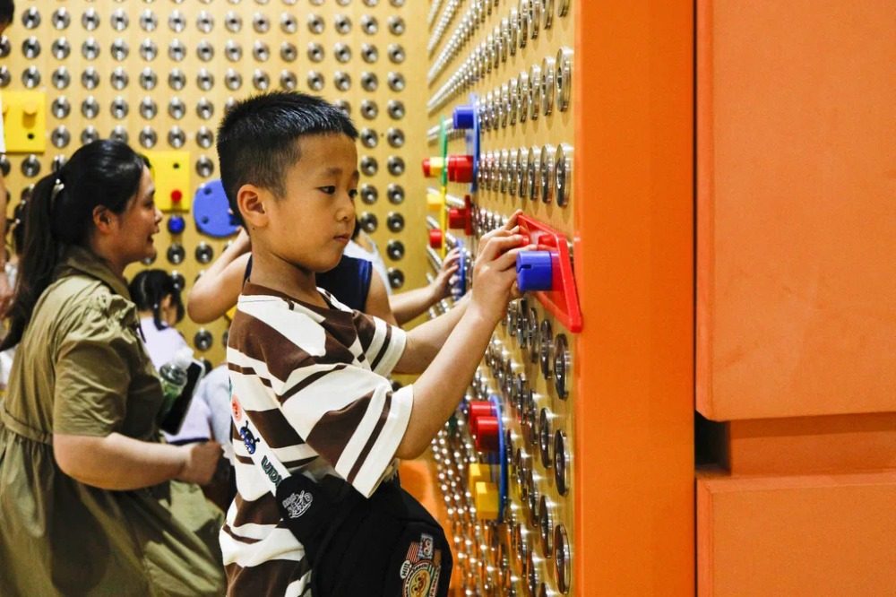 在科技馆生活科技展厅,记者看到,新增的3件亲子互动类展项都十分注重动手实践与智力启迪相结合。比如,“一笔画”展项考验反应与协调能力,通过手、脑、眼协同完成趣味挑战;“挥手测速”展项以即时互动激发活力,挑战参与者手速极限;“拧螺丝”展项让小朋友化身“小小工程师”,在动手操作中同步锻炼手部精细动作和空间思维。