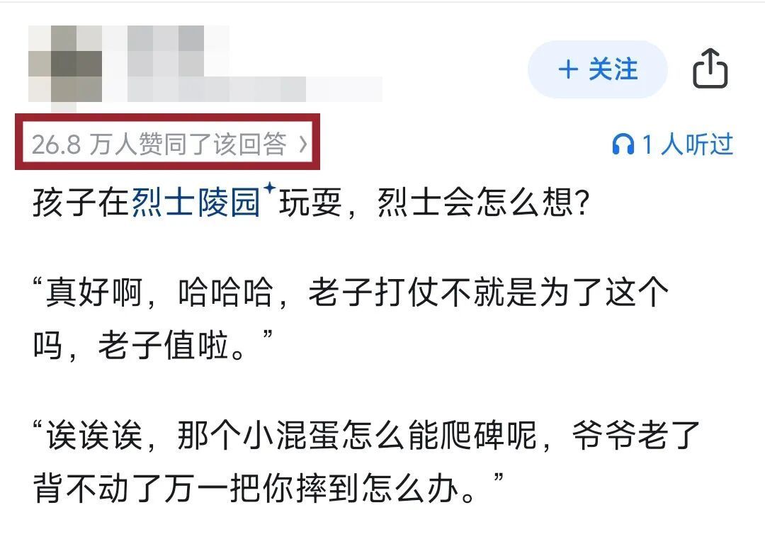 社交媒体上曾经有个热门话题:怎么看待在烈士陵园门前嬉笑打闹、放风筝的行为?